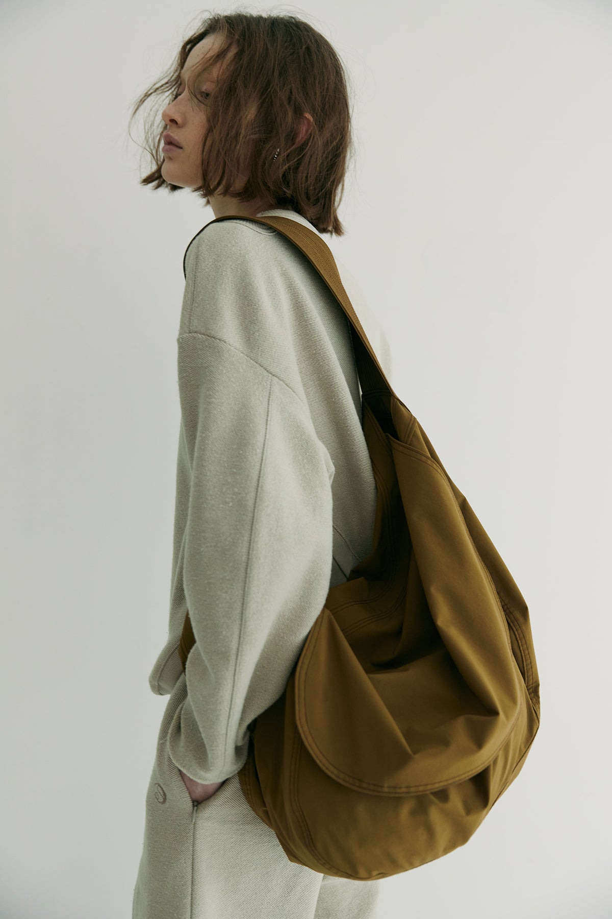 軽くてタフでたっぷり大容量でありながら、持ち手の細かなステッチや、洗練されたアウトラインでモードなスタイルにもフィット。