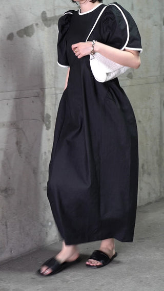 メリハリのあるシルエットとパイピングのカラーブロックが美しいサマードレス。