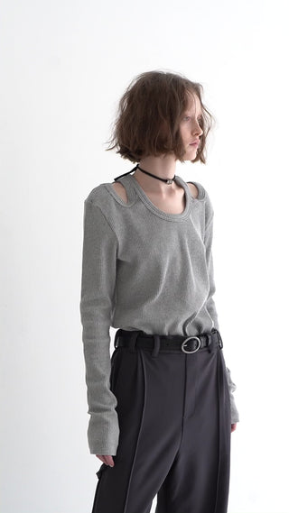 異なるデザインのネックラインを前後リバーシブルで楽しめるので、コーディネートや気分に合わせたアレンジが自在。