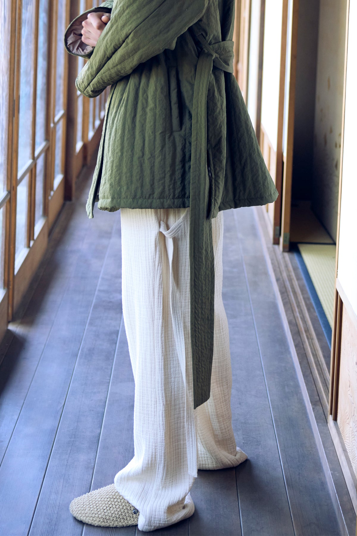 四重構造のガーゼ素材を使用し、空気を含んだような軽やかさとやわらかな肌あたりが特徴。
